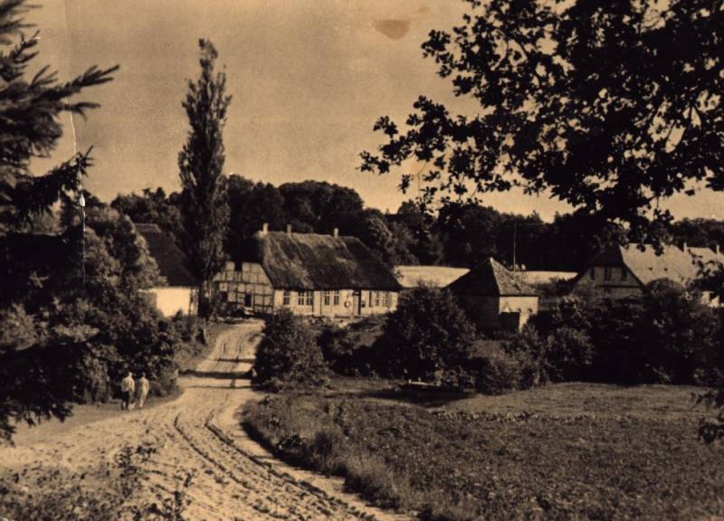 Die Büdnerei wurde um ca. 1780 im Zusammenhang mit der zu Ahrenshagen gehörenden Wassermühle erbaut. Nach dem völligen Abbrand der Mühle in 1829 die nicht mehr afgebaut wurde, gehörte das Haus dem Schmied. Die Schmiede befand sich auf der anderen Strassenseite gegenüber dem Haus; im reetgedeckten Haus selbst befand sich ein "Dorfkrug" (Gaststätte) sowie eine Poststelle. 1961 wurde die Schmiede abgerissen, die Poststelle allerdings wurde bis 1980 aufrechterhalten. Nach der Wende wurde das baufällige unter Denkmalschutz stehende Haus in mühevoller Arbeit über mehrere Jahre hin (1991-1996) restauriert. Die adlige Familie von Sachsen-Altenburg auf Serrahn war lange Zeit Eigentümer des Gutsdorfes samt Büdnerei.