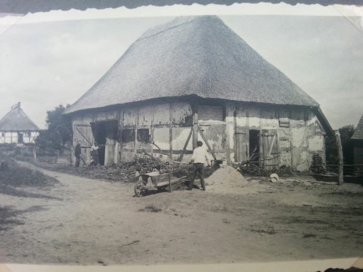 Das Bild stellt die nicht mehr bestehende Fachwerkscheune dar, die zu der Büdnerei gehörte; an ihrer Stelle steht heutzutage ein Schuppen. Im Hintergund erkennt man ein Fachwerkhaus; heute steht dort ein Neubauhaus (Kastanienstrasse 20). Möglicherweise handelt es sich um den 23,0 x 11,6 m grossen Katen mit zwei Wohnungen den Wilhelm Mastaler beschreibt in seiner Studie über die nicht mehr bestehende Wassermühle in Ahrenshagen. Weiter lesen : http://www.wilhelm-mastaler.de/WM-04-MB.htm#L4b1