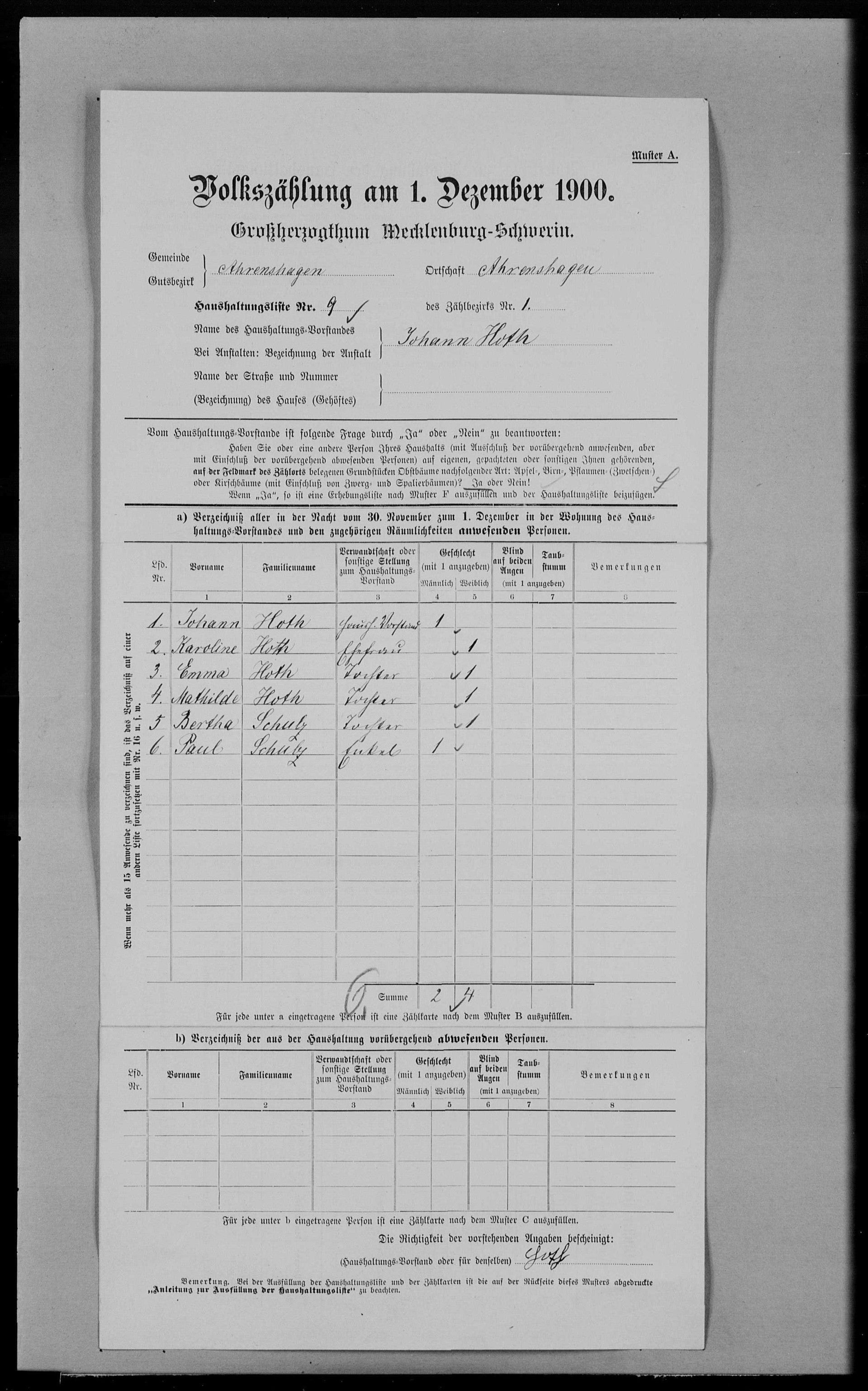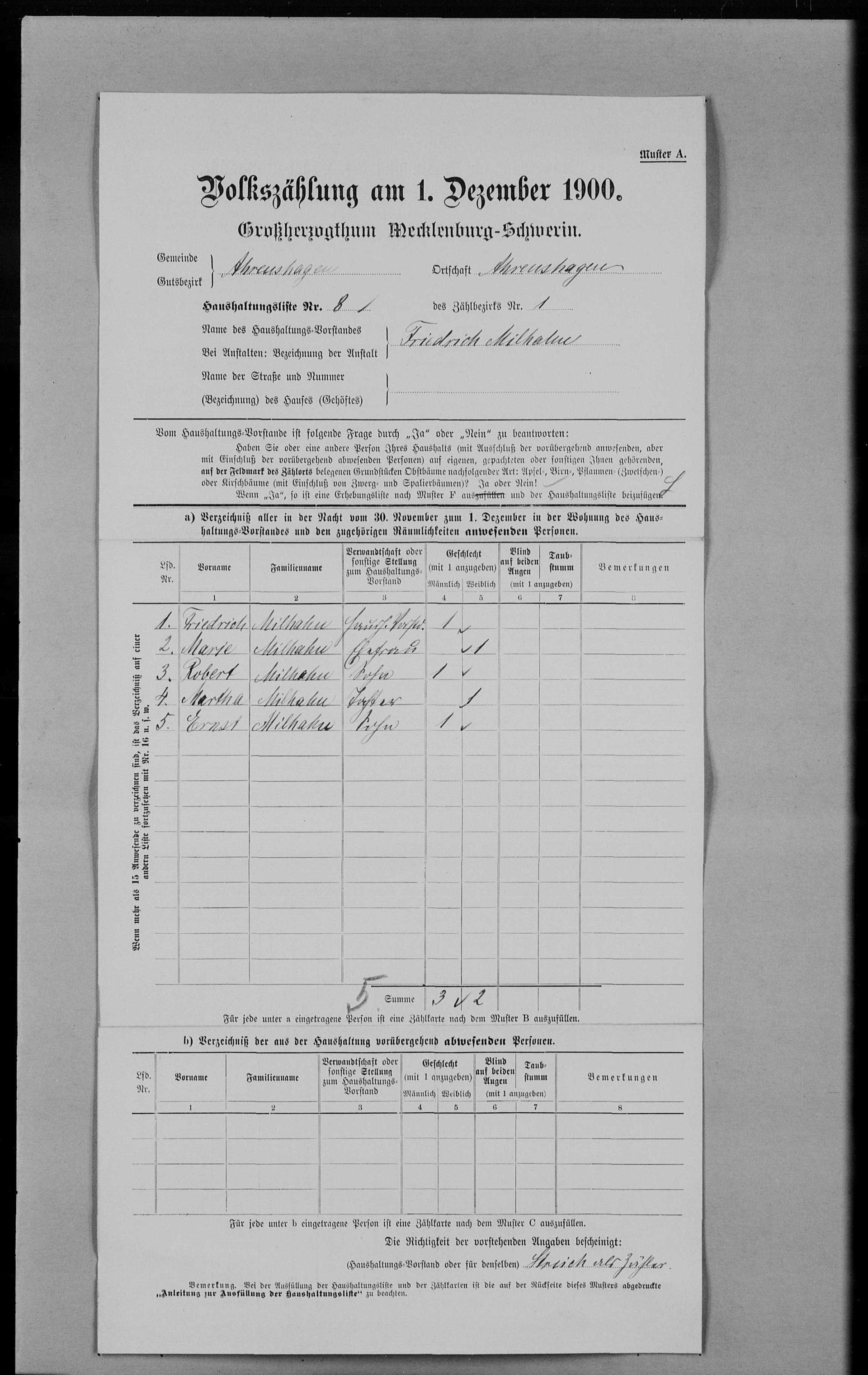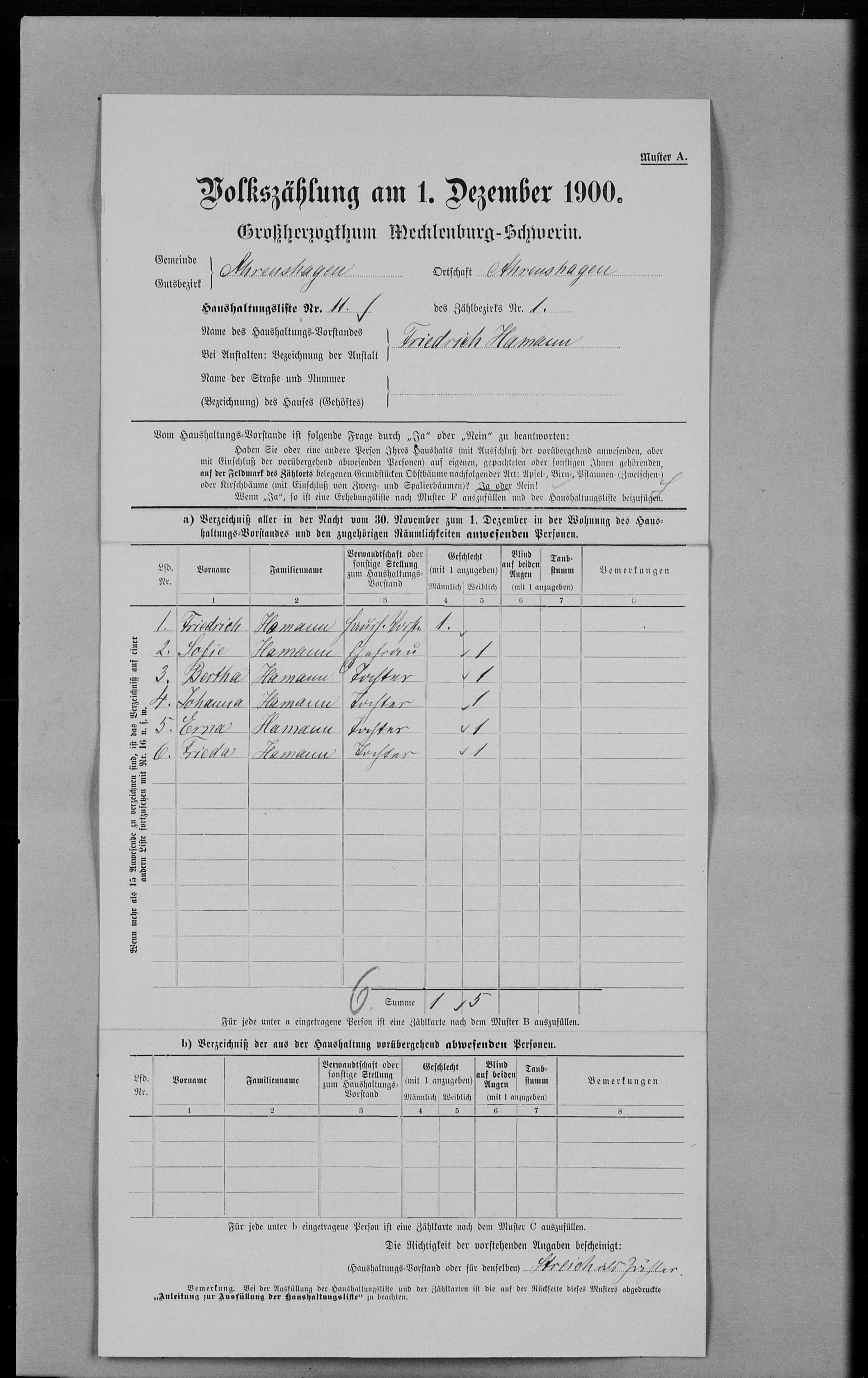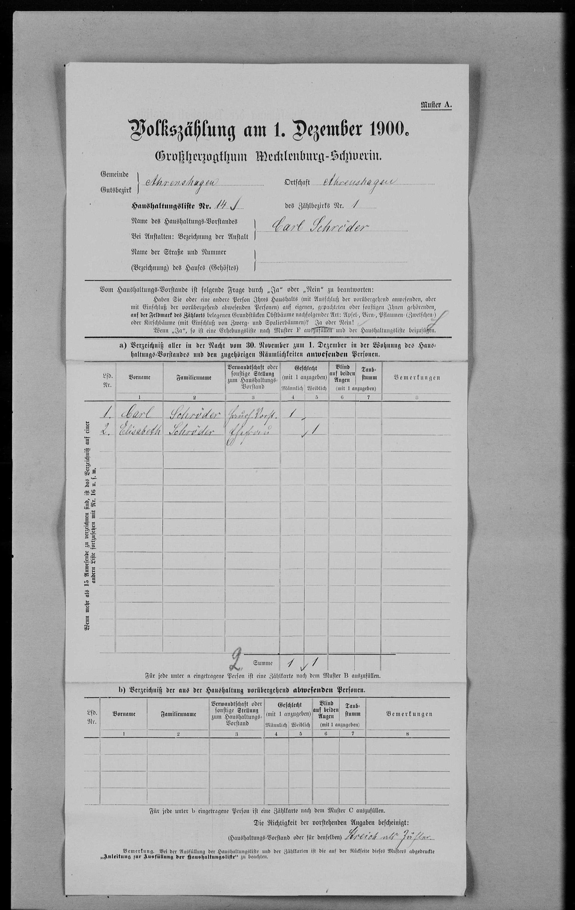 Die Zählung ergab für Ahrenshagen 92 Einwohner und 16 Haushaltungen.