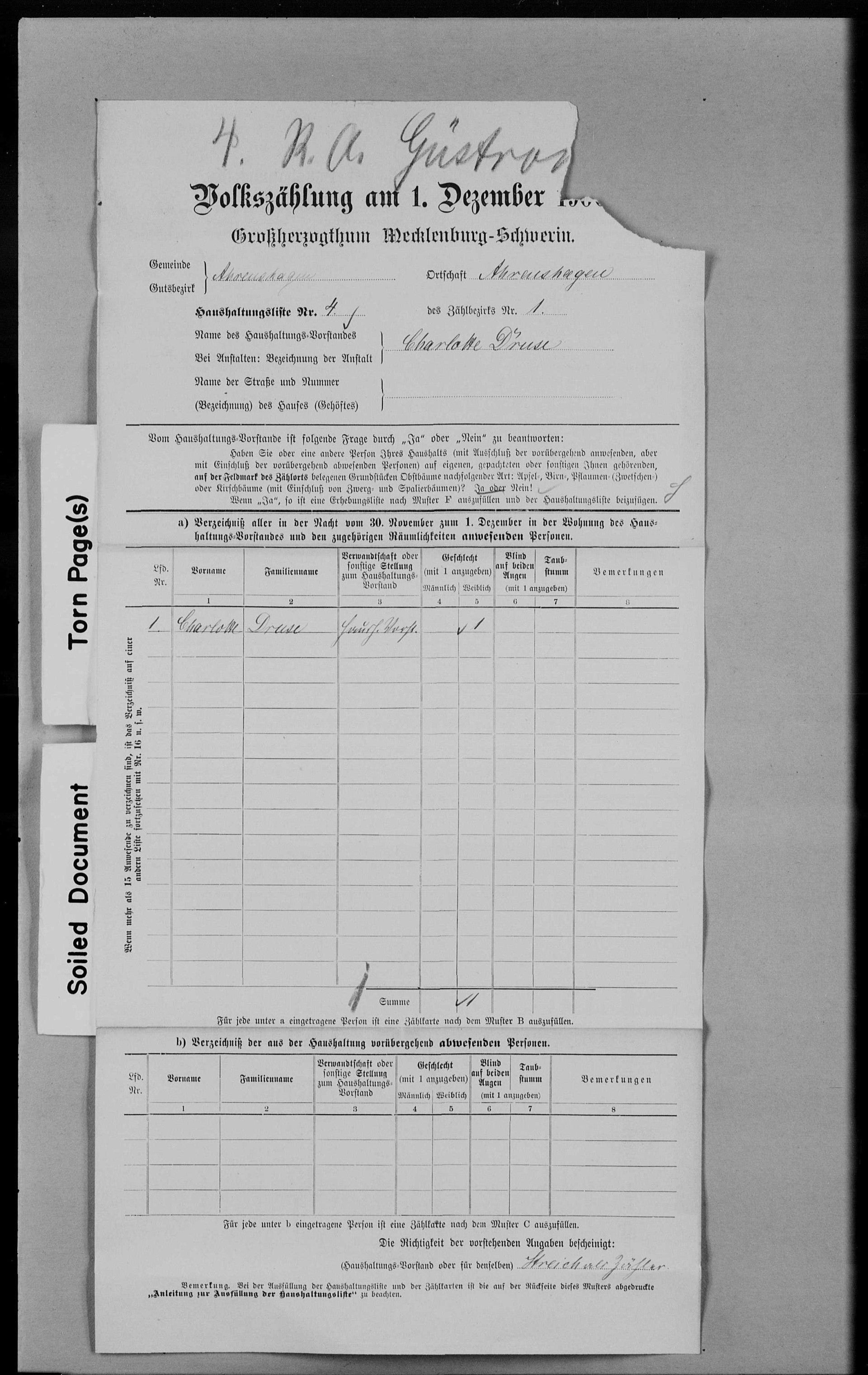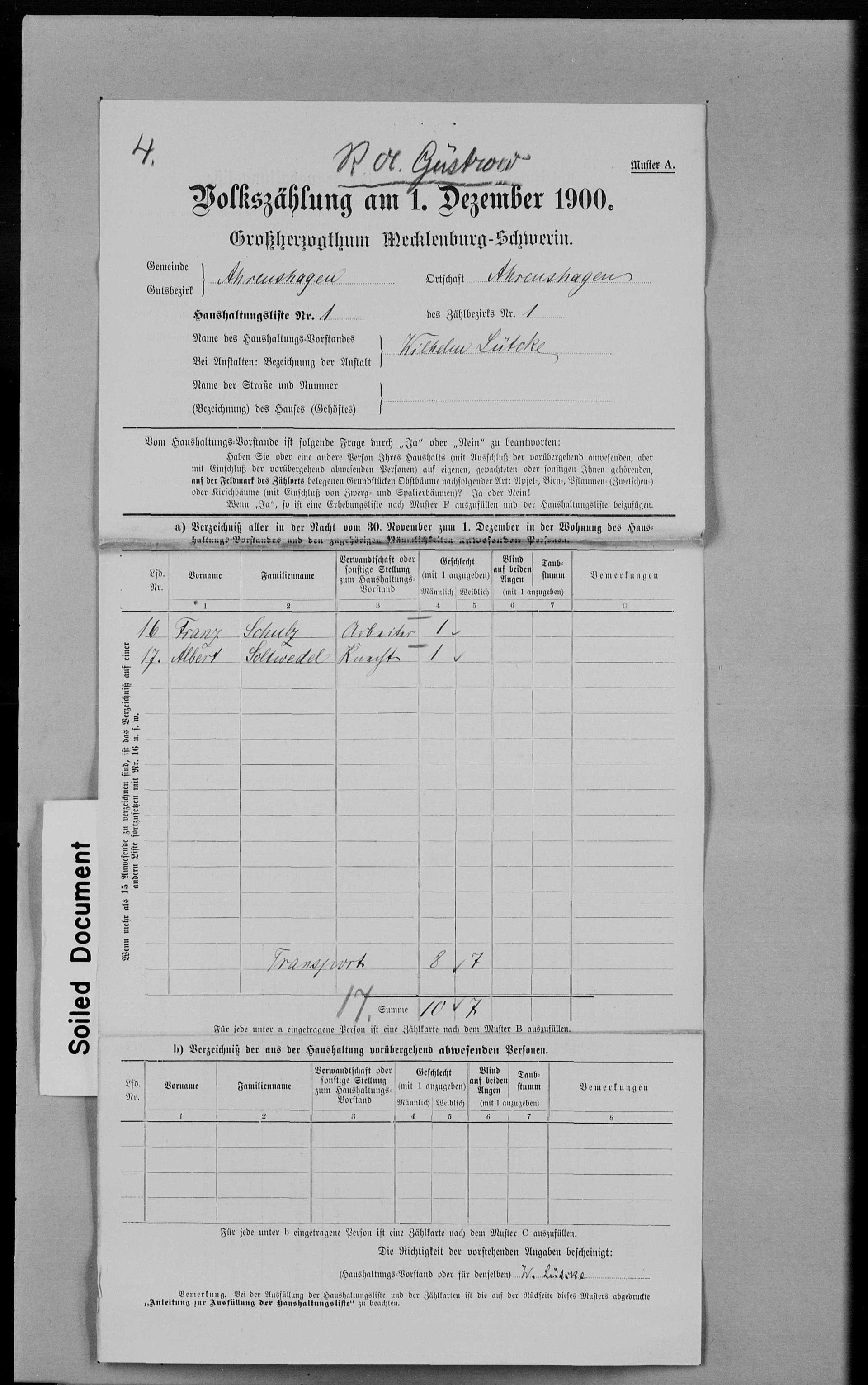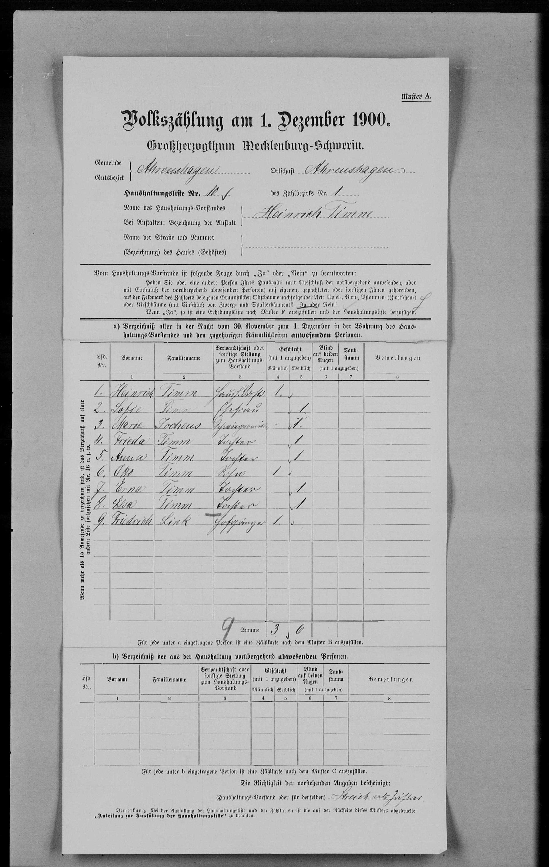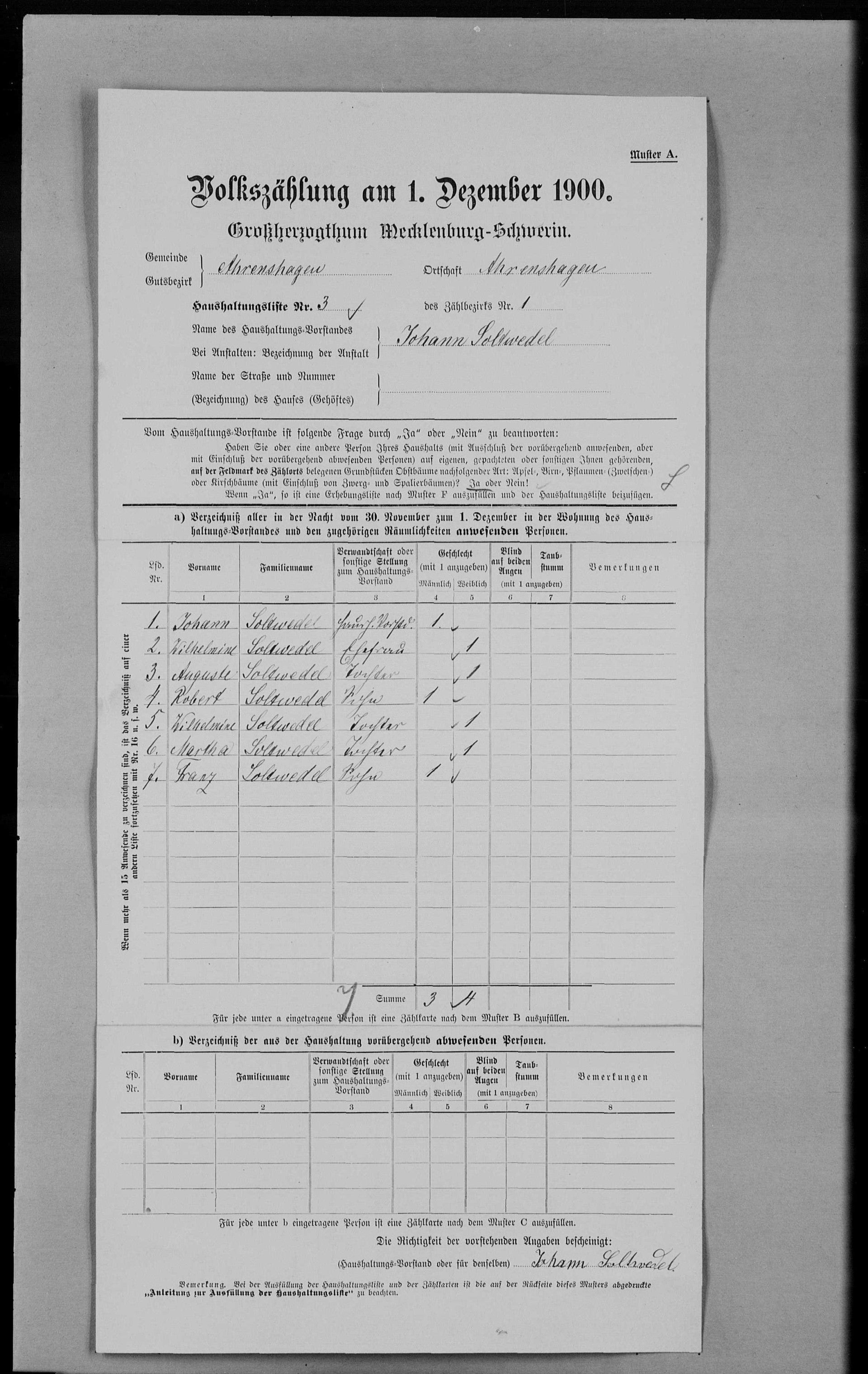 Die Zählung ergab für Ahrenshagen 92 Einwohner und 16 Haushaltungen.