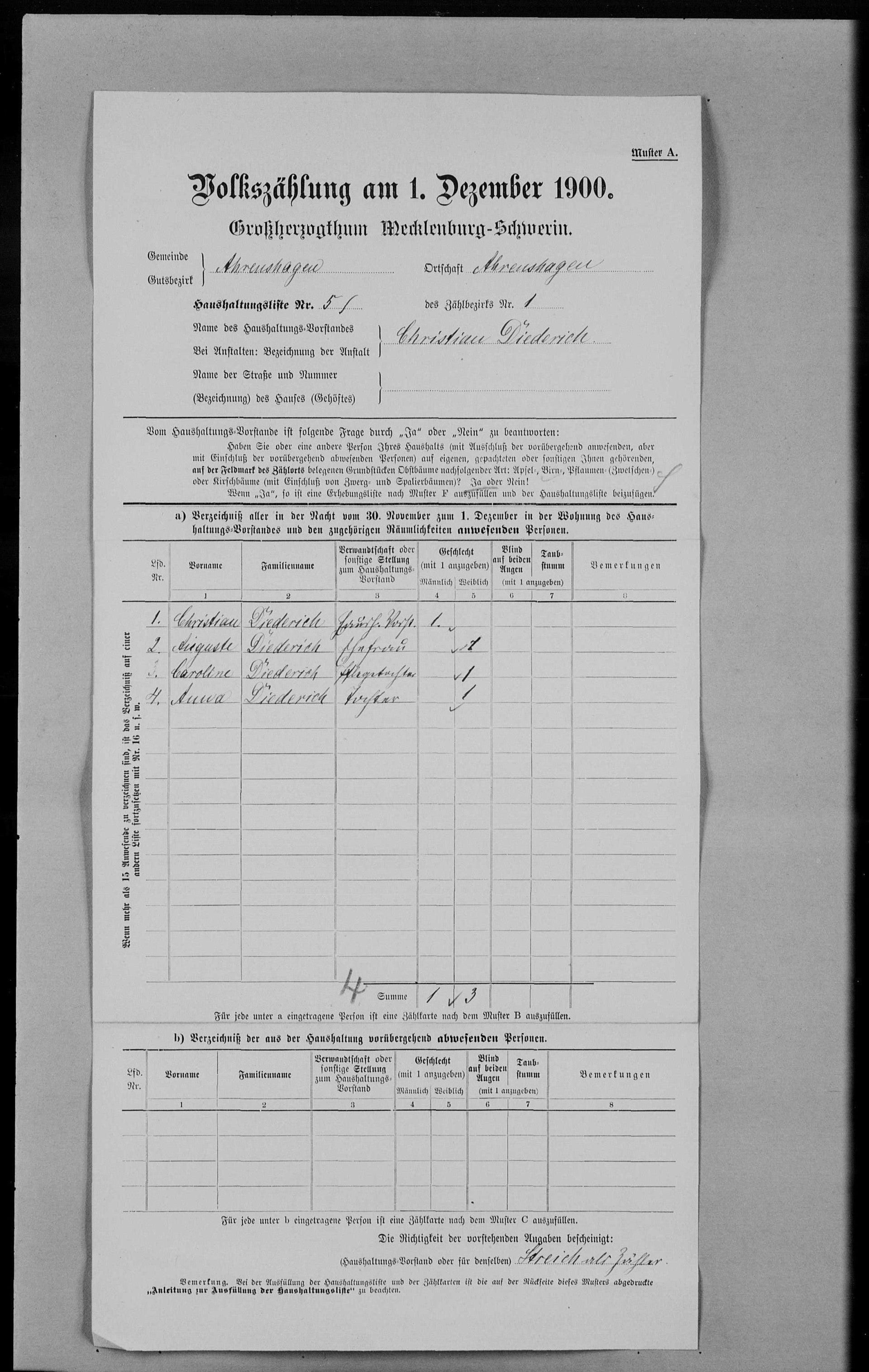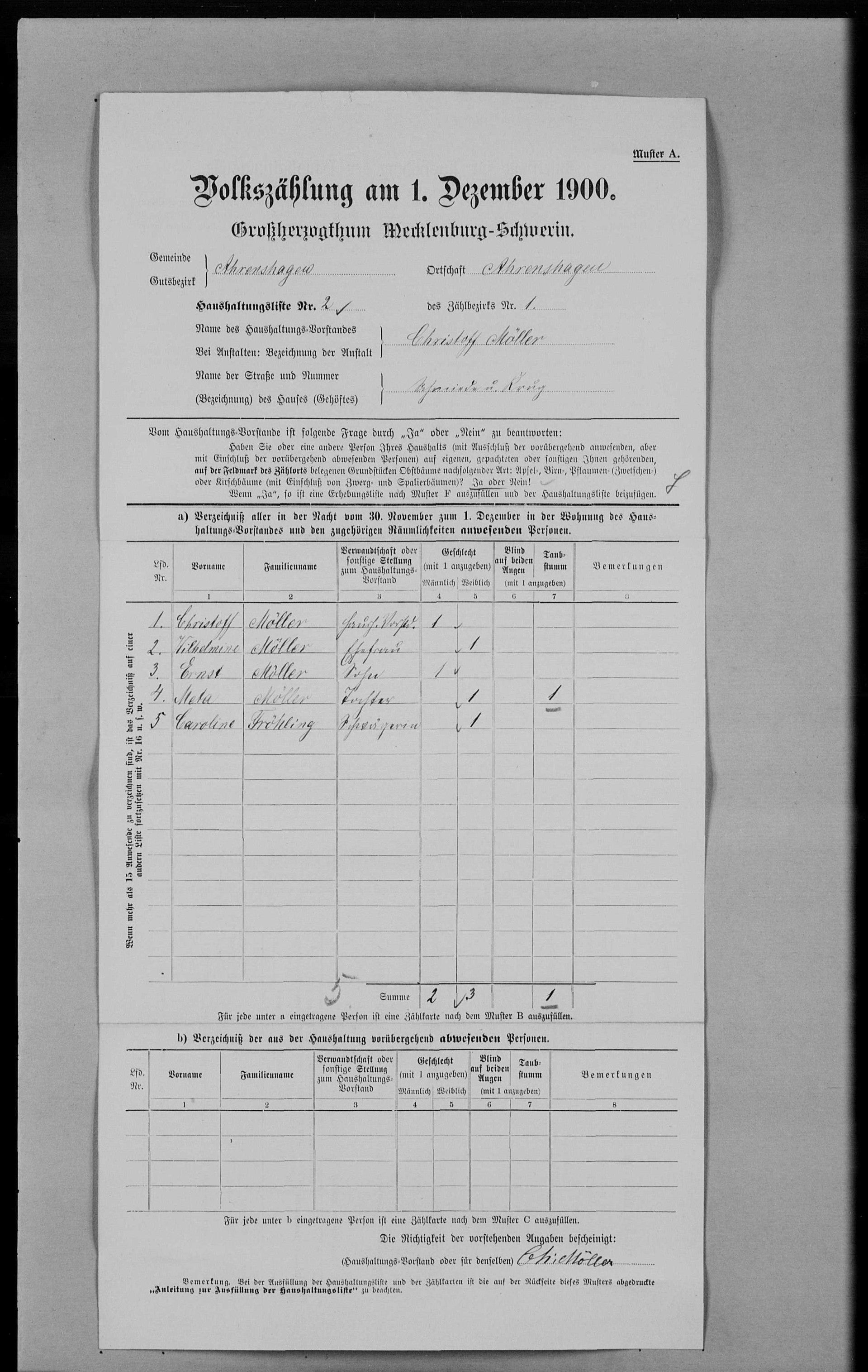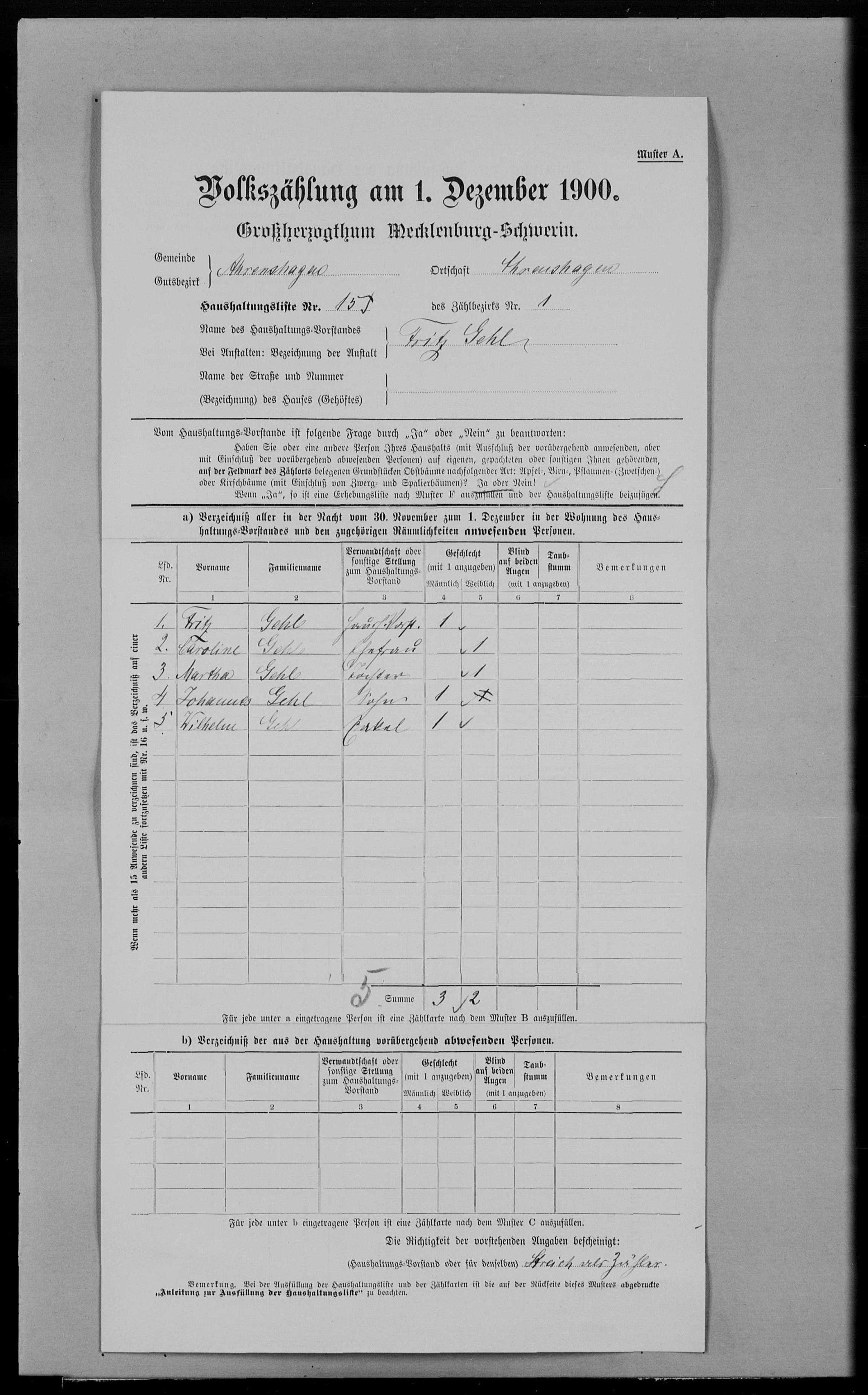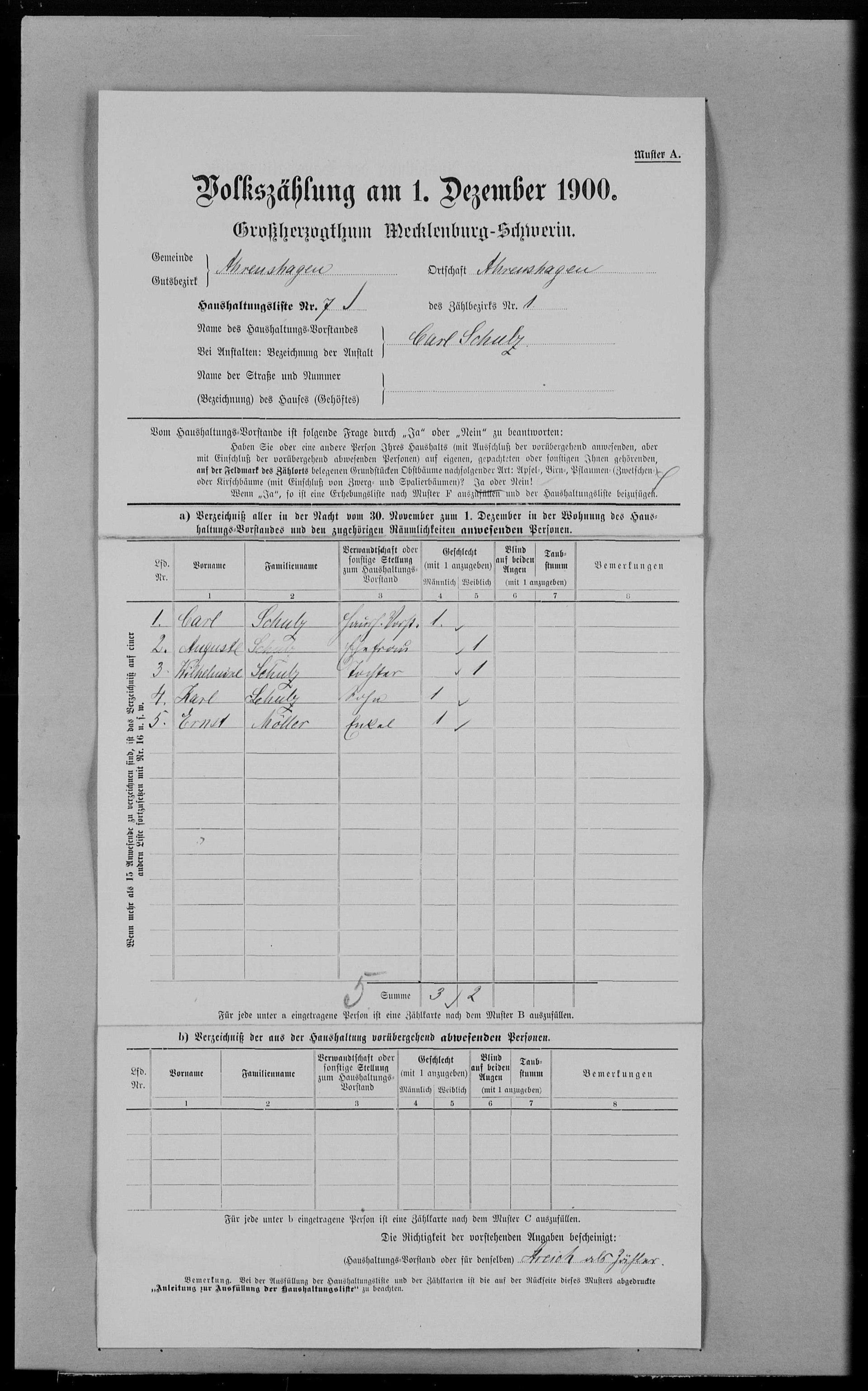 Die Zählung ergab für Ahrenshagen 92 Einwohner und 16 Haushaltungen.